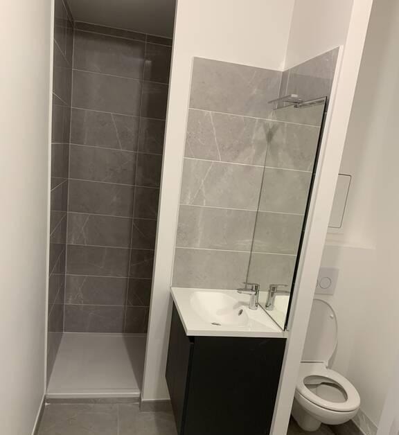 Calme et lumineux, il se compose d'un séjour avec cuisine ouverte entièrement équipée, d'une salle de douche avec WC et d'un balcon donnant sur cour intérieure. L'appartement est doté de grandes baies vitrées en triple vitrage et de volets roulants électriques. La fibre est installée (possibilité d'installer une box).