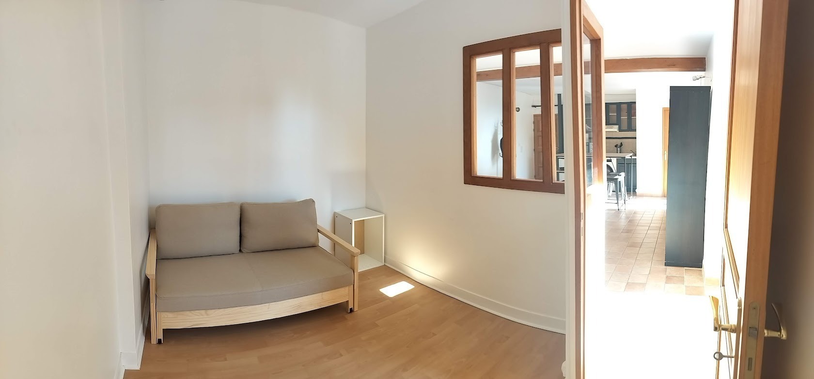 o un bureau indépendant équipé d'un clic clac 2 places (idéal pour le télétravail et/ou couchage d'appoint)