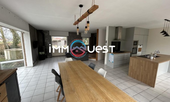 Uniquement dans votre agence Immouest: A proximité des axes principaux et situé au calme de la campagne, très beau pavillon individuel de 170m² habitables sur sous-sol complet avec grand garage, chenil, dependane et car-port sur une parcelle de +3300m² constructible.